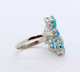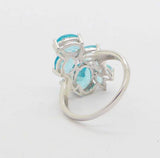 Pear Cut Neon Blue Apatite 14k White Gold over Sterling Silver Ring, Size 7. Stamped 925. This is 14k white gold plated. The total weight is 17.53 ct. The stones measure from 1.5mm to 6mm and the face of the ring measures 20mm by 19mm. Excellent condition.