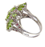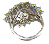 Peridot and Sapphire 14k white gold over sterling ring. Stamped 925. Stones measure 1.5mm to 5mm by 2.5mm. The face of the ring measures 28mm by 27mm. This is 14k white gold over sterling silver. Size 8.5 Excellent condition.