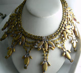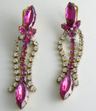 Pink Marquises Czech Glass Rhinestone Necklace and Clip Earring Set, Bijoux MG
