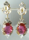 Pretty Czech Glass Fuchsia Pink Rhinestone Earrings