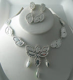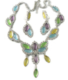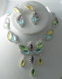 Marquise shaped moonglow cabochon stones. Length 17" and extension 2 1/2", earrings with clips 2. 1/2" Excellent condition.
