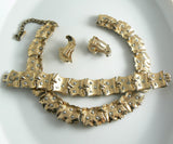 Rare Hobe Cleopatra Rhinestone Flowers Parure set in gold tone metal. The segmented necklace and bracelet feature tiny silver flowers with rhinestones over the gold tassel effect in a dazzling gold plated setting. The gold plated setting is in excellent condition. Extremely detailed tassels with the beautiful rhinestone imbedded flowers that are attached to each segment. This is a very well constructed Hobe' design, with exquisite workmanship to detail. Hi End jewelry. Missing one silver flower that is by the end of the bracelet as shown in 4th picture and a couple petals are missing here and there which is hardly noticeable.