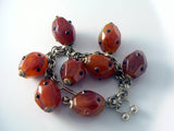Rare Kafin Bakelite Rhinestone Bracelet Earring Set