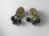 Rare Vintage Kafin Brown Bakelite and rhinestone bracelet and earring set. This has round cut rhinestones on brown bakelite beads set in gold tone metal. Signed Kafin on earrings only. Measures 7 1/2" and the clip earrings measure 1 1/2"