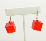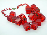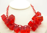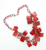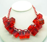 Red Bakelite Prystal Cubes Celluloid Chain Necklace and Earrings