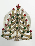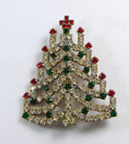 Red, Green and Clear Rhinestone Czech Glass Christmas Tree Brooch, Xmas Pin, Holiday Brooch
