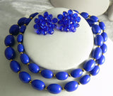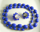 Royal Blue Bead Monet Necklace Signed Necklace Earring Set