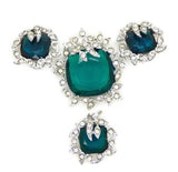 Sarah Cov Emerald Green and Clear Rhinestone Brooch, Pendant and Clip Earrings