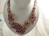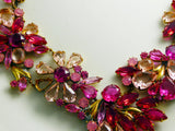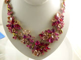 Shades of Red and Pink Floral Czech glass necklace. This is a beautiful necklace it is strung on chain instead of being soldered and moves freely. All Czech glass stones are open back to create a stunning necklace. Measures approx. 19"" including the extension chain and has a lobster claw clasp. Excellent condition.