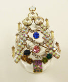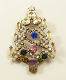 Signed Bijoux MG Clear Rhinestone Colored Bulbs, Candles Christmas Tree Pin, Holiday brooch, X-mas Pin