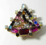 Signed Bijoux MG Rhinestone Christmas Tree Pin, Holiday brooch, X-mas Pin