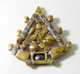 Signed Bijoux MG Rhinestone Christmas Tree Pin, Holiday brooch, X-mas Pin. Set in non-plated brass. This has 2 large beautiful rivoli stones. Measures 3" by 2 3/4" Very good condition.