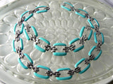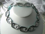 Signed Darla Vintage Necklace Bracelet Blue Enamel Chain Link Set in silver tone metal. The bracelet measures 8" including the clasp. the necklace is 17" the links are 1" x 1/2" Excellent condition. Very heavy well made set.