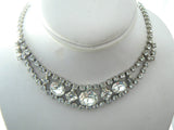 This is a beautiful vintage crystal rhinestone necklace, perfect for an evening out. The clasp is signed La-Rel. All rhinestones are perfectly set and stunning. The length of the necklace is 14". The primary cluster of rhinestones measures 4.5".