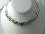 Signed Lisner Molded Leaves And Rhinestone Necklace