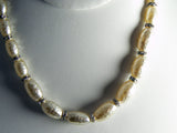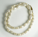 Signed Miriam Haskell Baroque Oblong Glass Pearl Rhinestone Rondelle Necklace