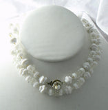 Signed Miriam Haskell Molded White Milk Glass Necklace