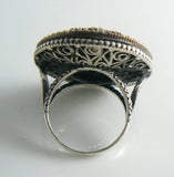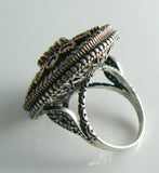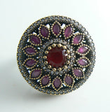Statement Huge Turkish Ruby Topaz Sterling Silver Ring. Stamped 925. Made with genuine rubies and topaz set in bronze and sterling silver. Measures 1 1/4" in diameter. Size 9.5. Very good condition.