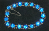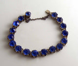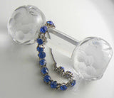 Sterling Blue Sapphire Color Prong Set Rhinestone Bracelet. Sterling Blue Sapphire Color Prong Set Rhinestone Bracelet. Prong set Sapphire blue faceted open back rhinestones. Set in sterling silver. Marked sterling and has a safety chain. Measures 7" in length. Excellent condition.