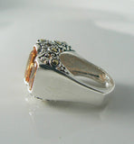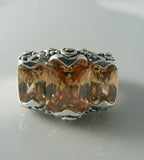 Sterling Silver 18tcw Champagne Quartz Estruscan Ring