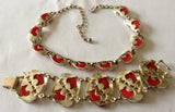 Striking Vintage Charel Red Cabachon Necklace and Bracelet Set