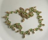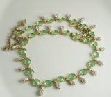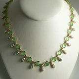 Stunning Art Deco Open Back Green Citrine Glass & AB Rhinestone Necklace