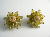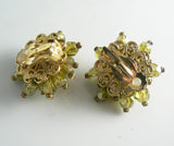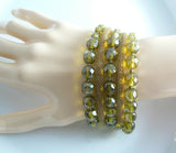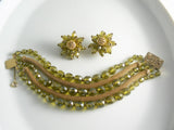 • Stunning Hobe Green Crystal And Gold Mesh Bracelet Earring Set - Vintage Lane Jewelry
