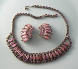 Vintage Juliana Style Pink Milk Glass Rhinestone Necklace Earring Set