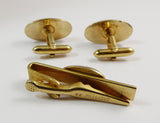 Swank Signed Art Deco Faux Onyx and Crystal Cufflinks and Tie Bar Set