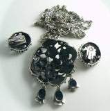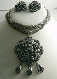 Tortolani Heavy Silver Tone Rose Flowers Necklace Earring Set