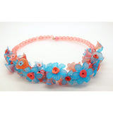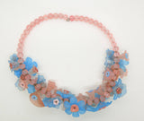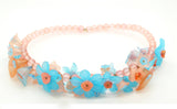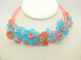 Turquoise and Peach Lucite Flowers, Glass Flowers and Peach Glass Beads Necklace