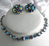 Unsigned Weiss Ab Rhinestone Necklace Earring Set