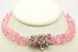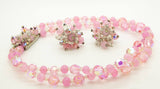 Vendome Pink Crystal Bead Necklace Hand Wired Flower Earrings Set