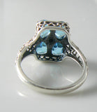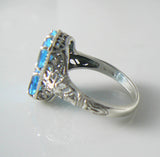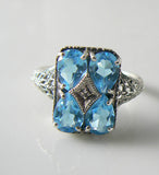 Victorian Sterling Silver Blue Topaz Diamond Filigree Ring
