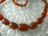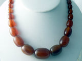 Vintage 1930's Root Beer Bakelite Necklace. Graduating beads from 3/8" x 1/4" to 1 1/8" x 7/8". Simichrome tested positive. Hidden screw clasp. Measures 28 1/2" in length. Excellent condition. no chips or cracks.
