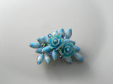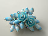 Vintage 1960's Sky Blue Roses And Milk Glass Star Sapphire Brooch