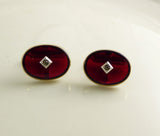 Vintage ANSON Gold Tone Oval Red Lucite Rhinestone Men’s Cufflinks