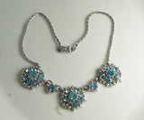 Vintage Aqua Blue Rhinestone Choker Necklace