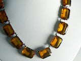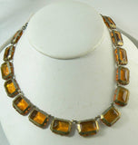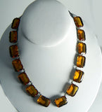Vintage Art Deco Amber Glass Panel Necklace, emerald cut, prong set, open back stones