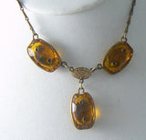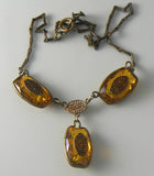 Vintage Art Deco Amber Topaz Bezel Rhinestone Necklace
