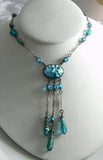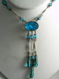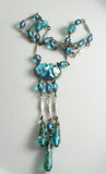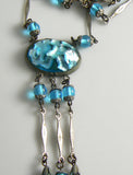 Vintage Art Deco Aqua Blue Foil Glass Drop Necklace Czech