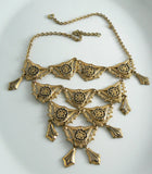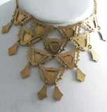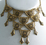 Vintage Art Deco black enameled festoon dangling necklace. This is gold tone with black enameling. Measures 15 1/2" in length including clasp. The drop measures 4 1/2". Excellent condition.