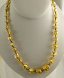 Vintage Art Deco Bohemian Gold Foil Graduated Glass Bead Necklace. This has buttery yellow gold leaf foiled beads with a secure barrel clasp. Measures 19" in length. Very good condition.