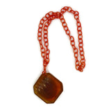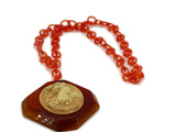 Vintage Art Deco Celluloid Cameo Bakelite Necklace. The Bakelite setting measures 3" by 3" and was simichrome tested. The length of the celluloid chain is 14" Excellent condition. circa 1930's.