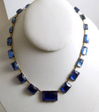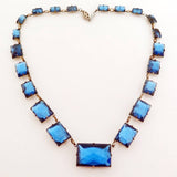 Vintage Art Deco Czech Vauxhall Sapphire Blue Glass Necklace