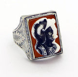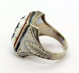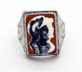 Vintage Art Deco Hard Stone Trojan Soldiers Cameo Sterling Silver Men's Ring