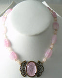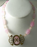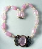 Vintage Art Deco Pink Glass And Scarab Pendant Necklace