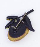 Vintage Austria Glass Berry Japanned Fruit Brooch. Signed Austria and set in japanned black metal. It has olive green rhinestone accents. Measures 2" by 1 3/4". Very good vintage condition. circa 1950's