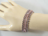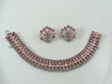 Vintage B David Pink Rhinestone Bracelet Clip Earrings Set
