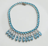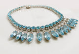 Vintage Blue Rhinestone Sparkling Dangle Fringe Necklace Choker